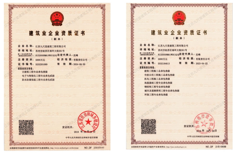 “九層之臺、起于累土;九尺之堂、始于微末”。江蘇九尺堂建筑工程有限公司自重組以來,經(jīng)歷了數(shù)年的輝煌歷程。公司地處以園林典雅聞名天下的中國蘇州。集建筑、山水、花木、雕刻、書畫等于一體的蘇州文化藝術(shù),成為了九尺堂人孕育靈感與迸發(fā)激情的沃土。